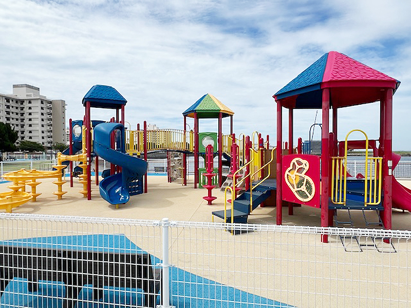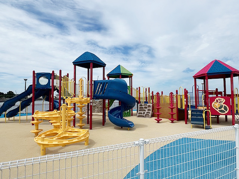 米軍の横須賀基地にて、遊具のある公園の工事をしました。 安全のためにゴムチップ舗装工事を行った上で、遊具の組み立て・設置工事を行いました。
