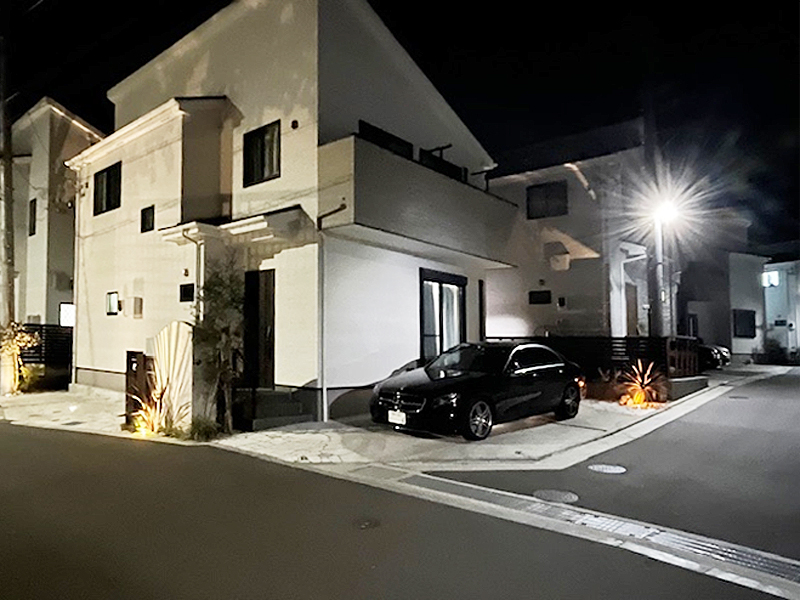 同じ新築が立つ中、どうしても建物へのウエイトを掛けがちですが、外構工事にも力を入れる事によって、何ランクも上に演出できたと思います。