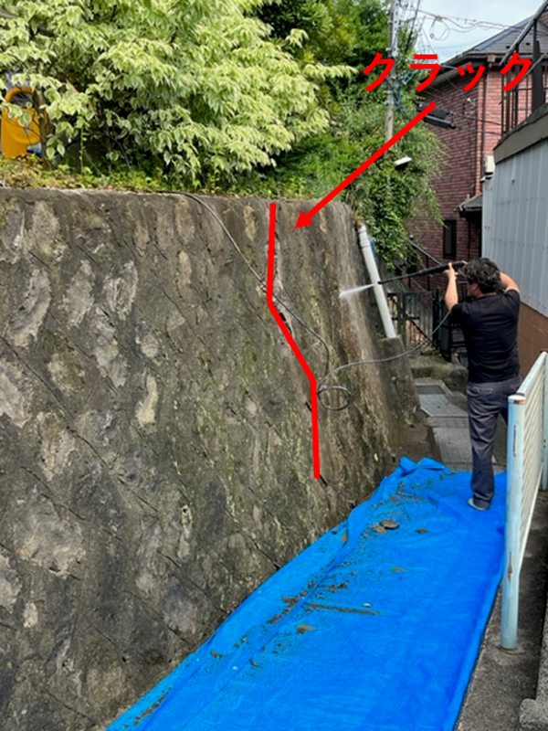 石積の補修工事では、研り→高圧洗浄→浸透プライマー塗布→クラック修理→下塗り→上塗り をして仕上げました。