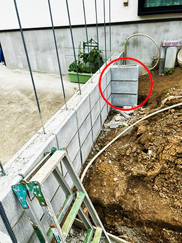 また、側面は段差をそのままで、ブロック塀+フェンスの組み合わせでした。