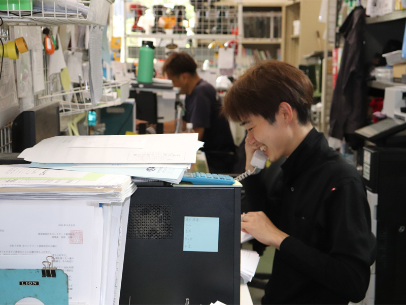 スタッフJ Speaking: 前日に、明日の配達の場所や生コンの現場の情報を共有し、円滑に業務を遂行しています。